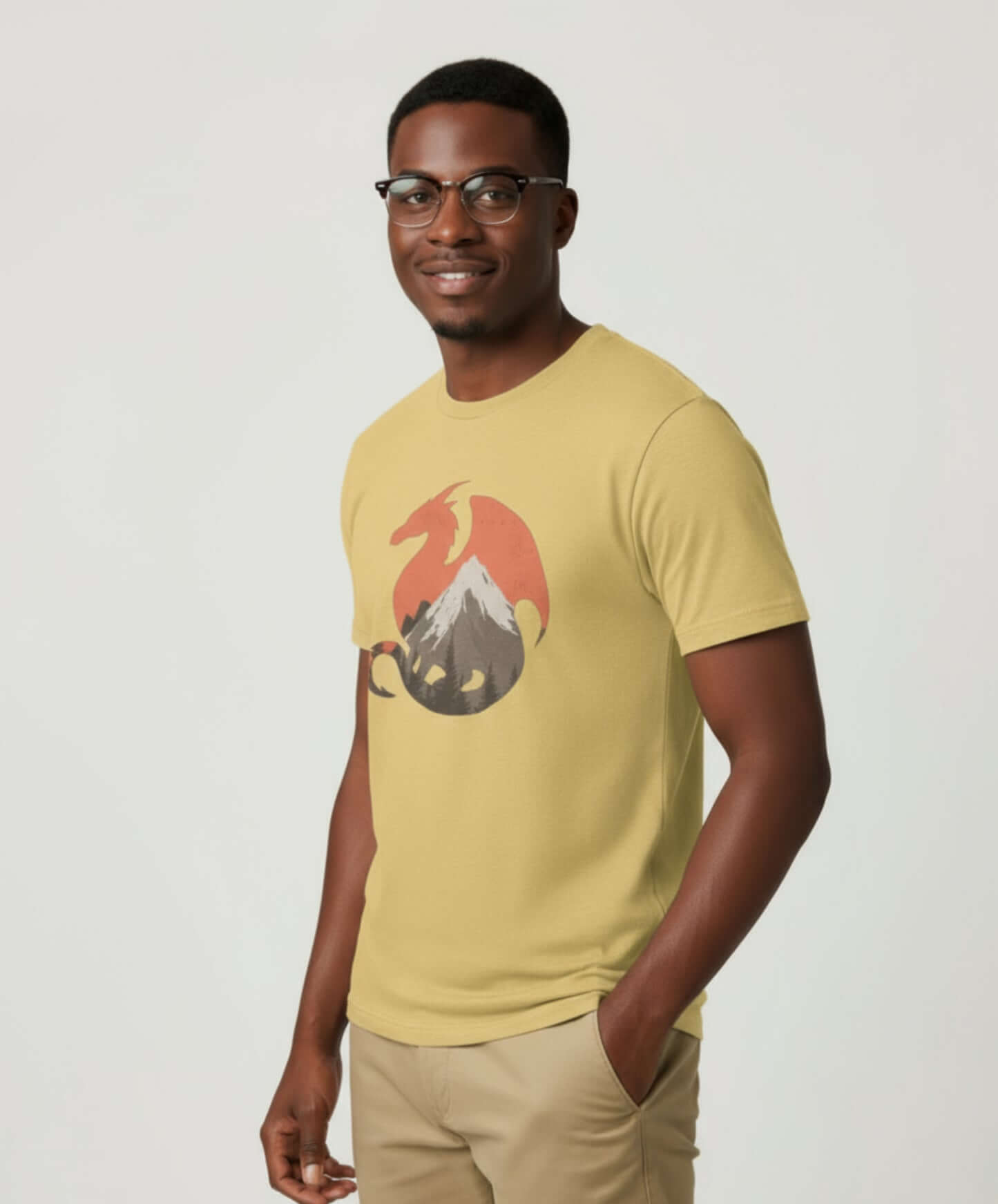 Ah, the fire-hearted wanderer — this dragon glows with the warmth of faraway mountains kissed by sunset. A sleek dragon outline filled with rich orange and gold tones, it captures the calm before the flight, that moment where dusk lingers and magic hums in the air.