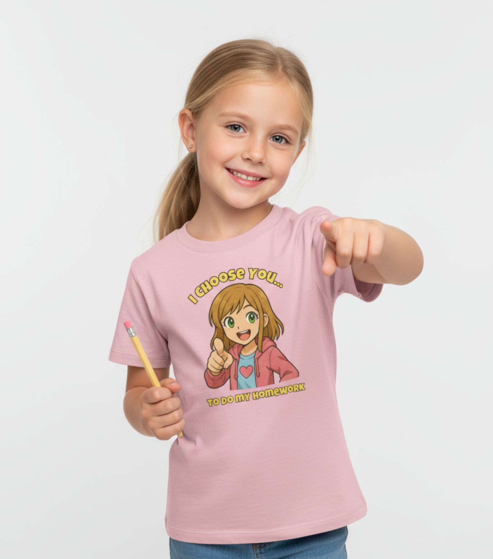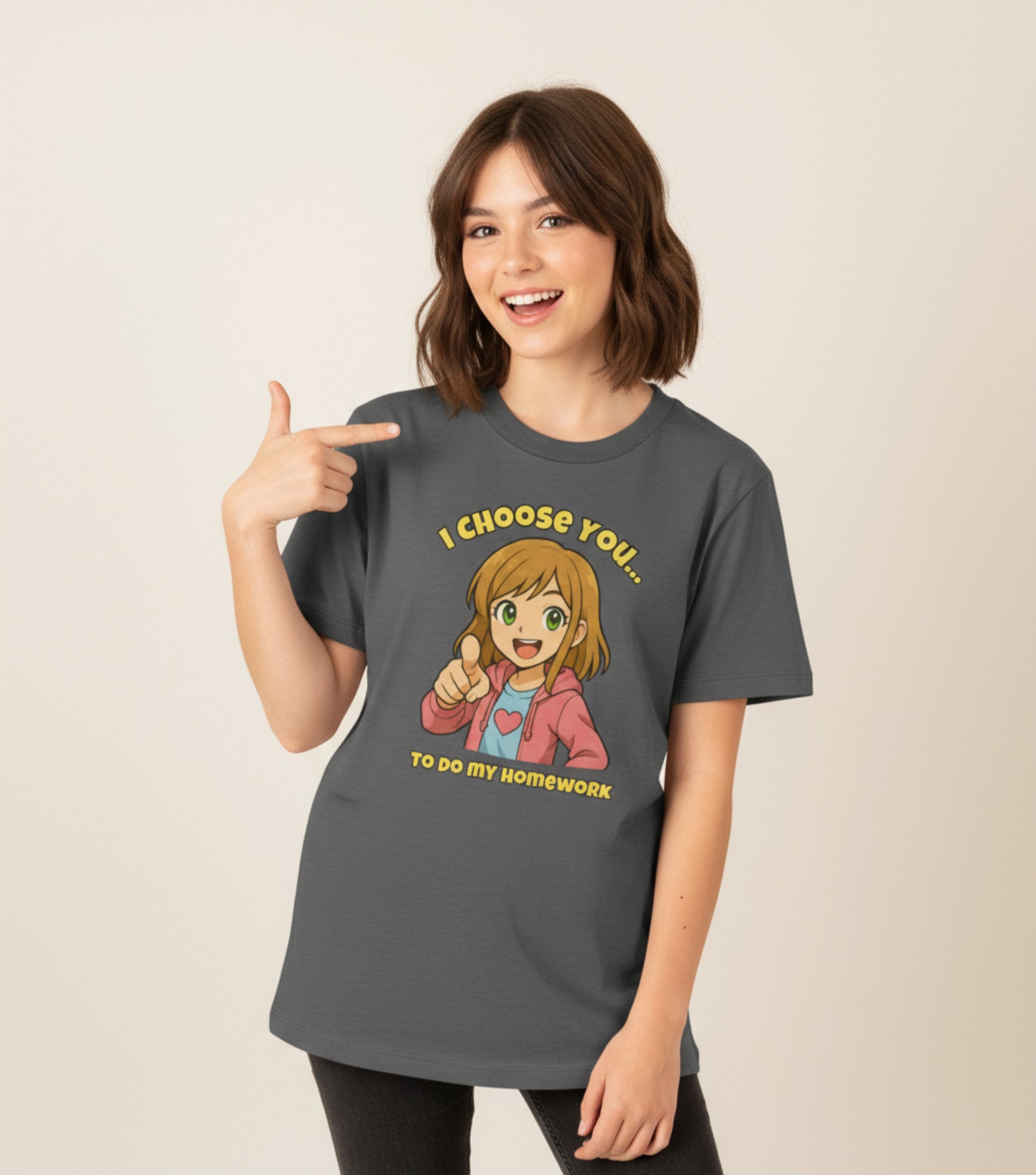 Straight from the land of imagination and tabletop quests, this playful design turns studying into an adventure. The tee features a bold anime-style hero — boy or girl — pointing dramatically at YOU, as if they’re about to call you into battle… or at least into finishing that math worksheet.