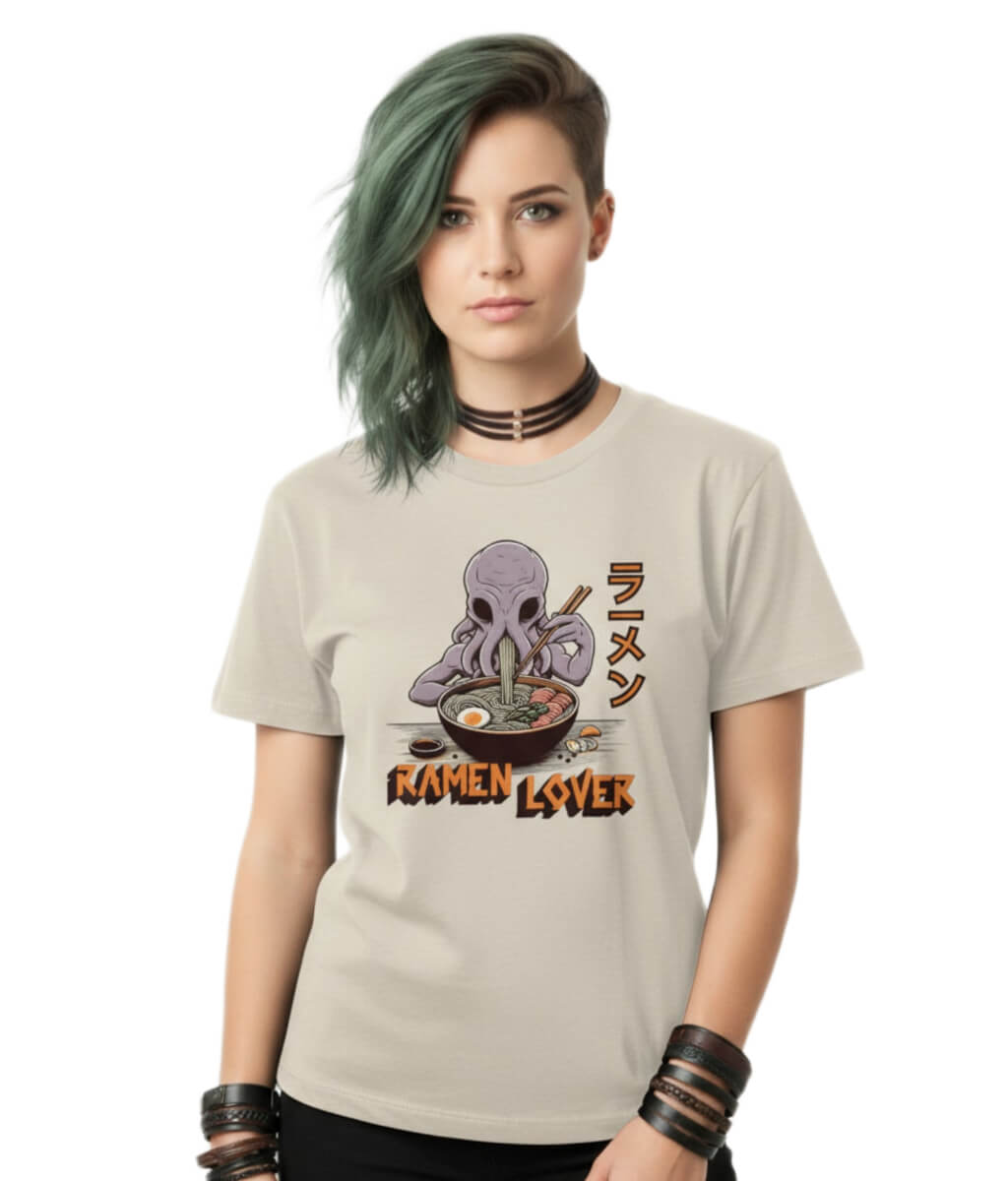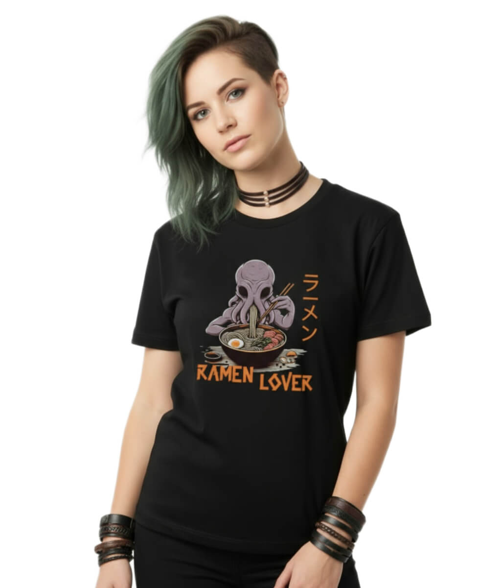 Featuring playful Japanese script on the side reading ramen, this tee is a love letter to tabletop chaos and noodle enthusiasts alike. Soft, comfy, and vivid in color, it’s ideal for adventurers who know that even mind flayers need a break from scheming.