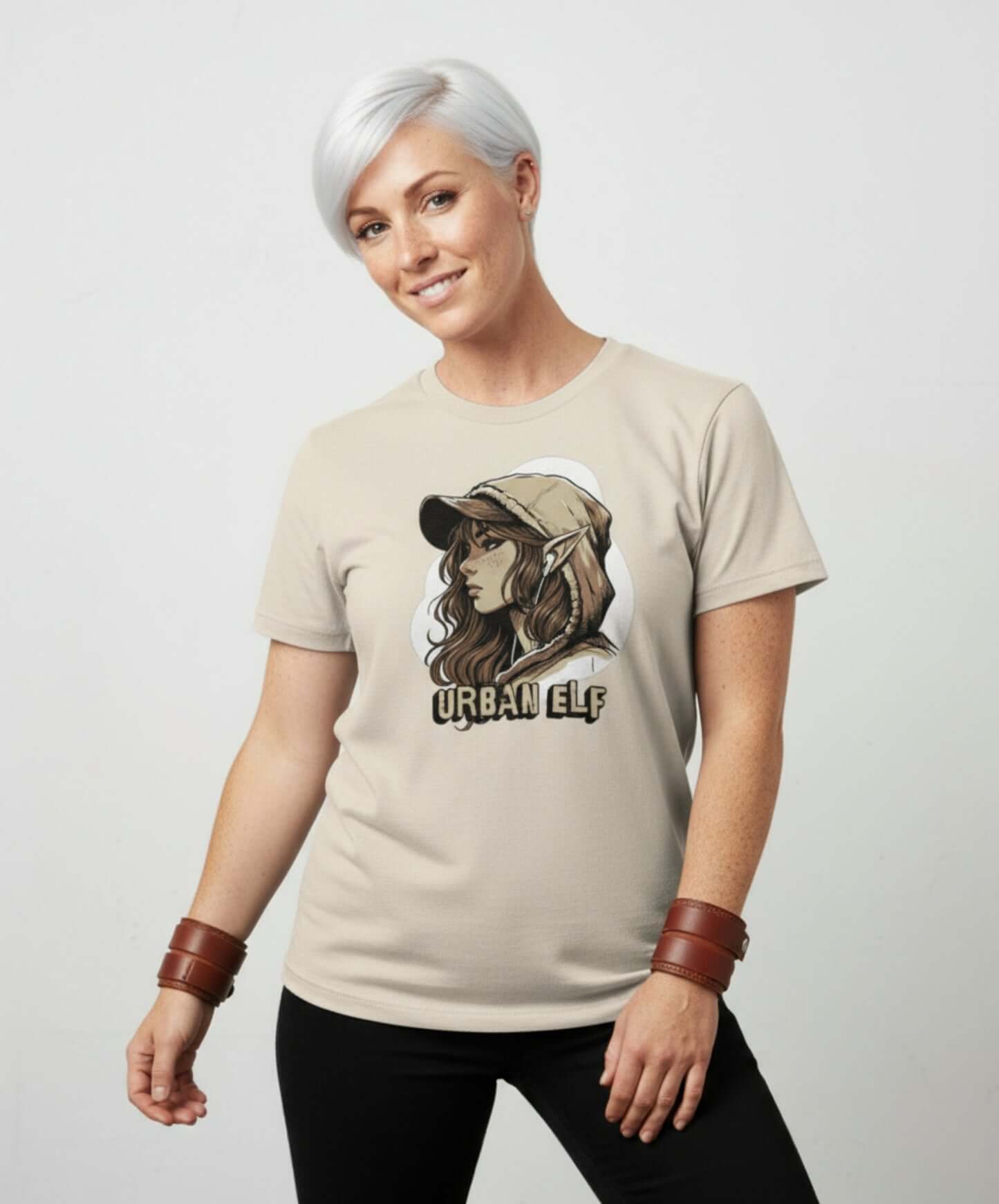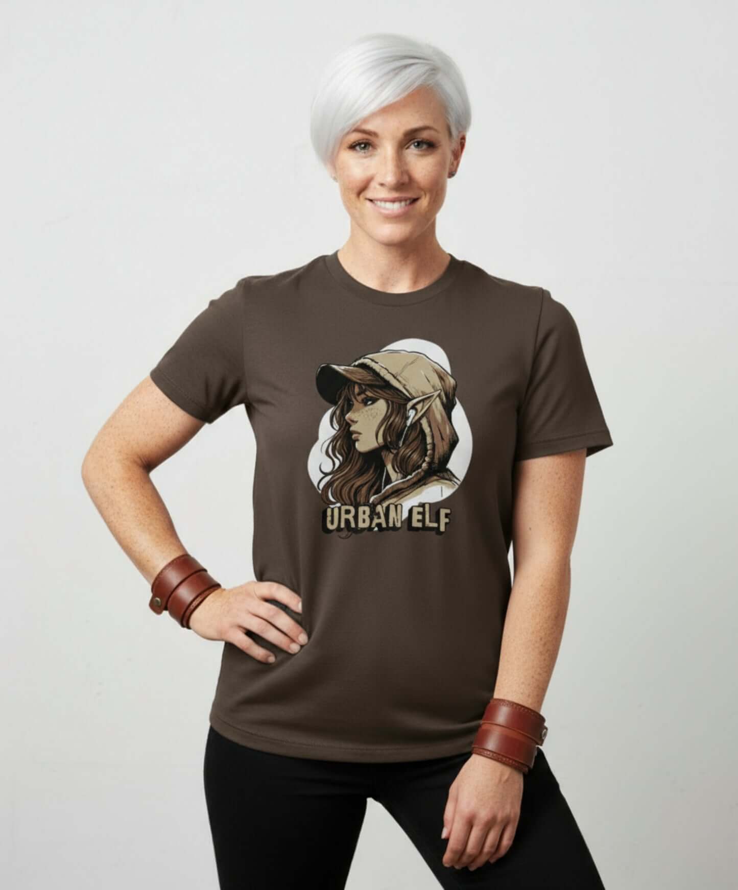 Ah, the elusive Urban Elf — graceful, stylish, and just a touch aloof. Once they roamed enchanted forests; now they stride through concrete jungles, sipping lattes, earbuds in, hoodie up. This design captures that perfect blend of fantasy poise and street-cool indifference — a side portrait rendered in clean lines and quiet confidence.